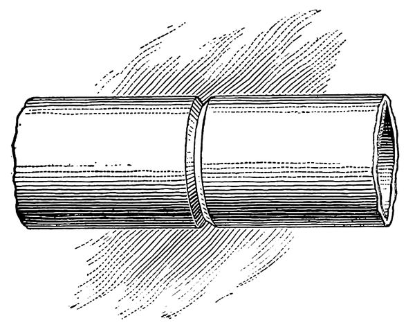 Pipes that are placed in a horizontal position are usually butt seamed, as a stronger seam can be made in that manner. This form of seam is also used in lengthening traps, bends, etc. To prepare a round pipe for butt seaming, the ends of the pipe should first be made perfectly round by inserting a drift plug and dressing the lead up close to it. The ends of the pipe should be rasped true and then shaved clean. Also shave the pipe for a distance of ⅛ inch each side of the edge. A piece of stiff writing paper should then be rolled up the size of the pipe and inserted in the ends. This paper will prevent any lead from running into the pipe and leaving rough edges, as these afterward form an obstruction.
