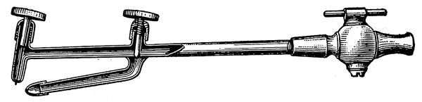 The burner, shown in Fig. 46, which is the most important part of the apparatus, is also constructed on a principle not heretofore used on a 125lead burning apparatus. It consists of a small tube, to one end of which is screwed a small cock, similar to a pet cock. To the other end, at a convenient angle, is brazed the burner proper. This consists of a needle point valve. The needle point, being about ½ inch long, is arranged so that the point can pass through the gas outlet about 1-16 inch. This seems to spread the flame in such a manner that it absorbs sufficient air to reduce the flame. It can be regulated by drawing the needle in or out, as the work requires. There is also a tube arranged to act as a by-pass or subflame. By opening the valve on this by-pass a pilot or subflame is maintained, which does away with the annoyance of having the flame pop out or become extinguished, as it is instantly ignited again by the subflame. In operating, the flame is held at such a distance from the work as experience will teach to be proper, or until the lead starts to melt. It should fuse with that well-known and instantly recognized bright appearance which indicates the nonoxidizing flame.