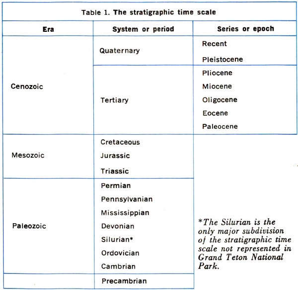 | ⁸/₁₀₀₀ | 1 million | ?—Tilting and faulting of southern part of Jackson Hole |