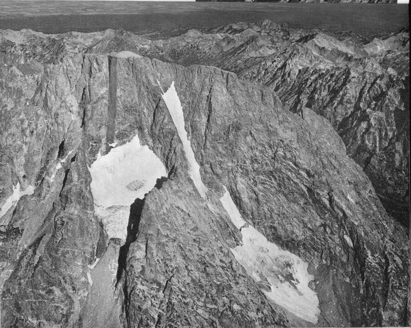 Of all those who explore the high country, it is the mountaineer who has perhaps the greatest opportunity to appreciate its geologic story. Indeed, the success of his climb and his very life may depend on an intuitive grasp of the mountain geology and the processes that shaped the peaks. He observes the most intimate details—the inclination of the joints and fractures, which gullies are swept by falling rocks, which projecting knobs are firm, and which cracks will safely take a piton. To many climbers the ascent of a peak is a challenge to technical competence, endurance, and courage, but to those endowed with curiosity and a sharp eye it can be much more. As he stands shoulder to shoulder with the clouds on some windswept peak, such as the Grand Teton, with the awesome panorama dropping away on all sides, he can hardly avoid asking how this came to be. What does the mountaineer see that inspires this curiosity? From the very first glance, it is apparent that the scenes to the north, south, east, and west are startlingly different.