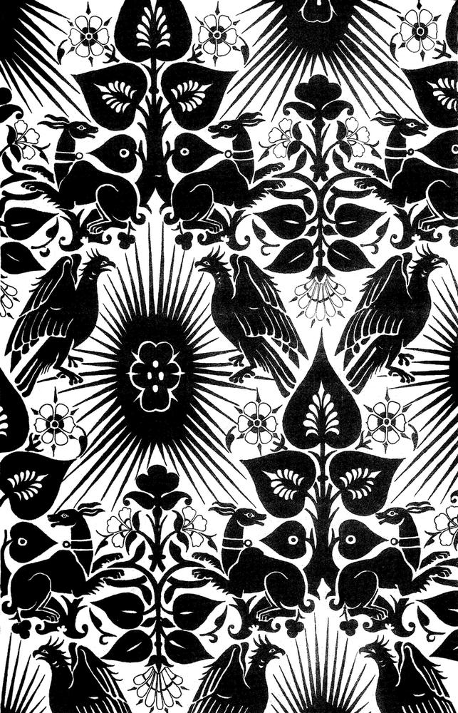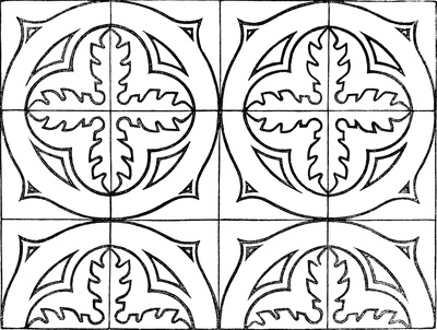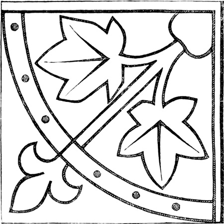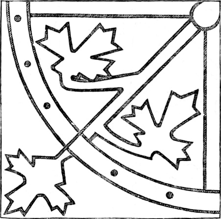 Vergleichen wir ihn mit einer Anzahl von Stoffmustern, wie sie Bock veröffentlicht hat, so zeigt sich, daß derselbe wol im Stil am meisten Aehnlichkeit mit einigen italienischen Mustern hat (Gesch. d. liturg. Gewänder, I. Taf., XIV. Musterzeichner des Mittelalters, Taf. I und VI, Fig. 10 u. 11). Der Grund ist rosa, das Muster darauf gelblichgrün, die Blumen sind weiß. Eine Beschreibung des Musters ist durch die Abbildung erspart. Bock setzt diese Muster in’s 13.–14. Jahrh. Wir wollen einer solchen Autorität in diesem Fache gegenüber unsere Meinung nur schüchtern dahin aussprechen, daß der Naturalismus, die Schärfe und Energie der Zeichnung uns nur auf das 14. Jahrh. leiten würde. Es scheint uns indessen der Vergleich der von Bock publicierten Muster allein nicht ausreichend, um spanische, maurische, sicilianische und norditalienische Fabrikate streng von einander zu unterscheiden. Wir dürfen deshalb nicht geradezu die Frage nach dem Ursprunge dieses Stoffes dadurch als erledigt betrachten.