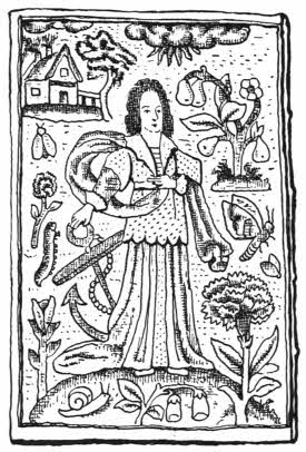 English clog almanacks are squared pieces of wood, measuring from about two feet to nine or ten inches in length, and the larger ones are sometimes as much as three inches square. They are notched along the angles, small notches without ornamentation indicating week days, big notches stand for Sundays, and Saints days have all kinds of ornamental flourishes, which now and then show familiar forms such as Saint Catherine’s wheel and Saint Lawrence’s gridiron.