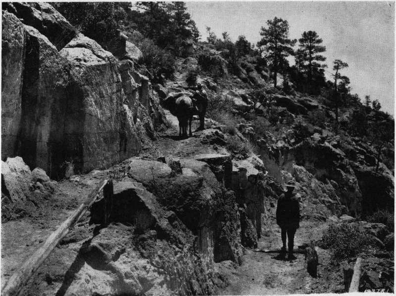 There were saddle horses at the brink of the Canyon for folk who couldn’t or who were too lazy to walk down the trail. And then there were benches and tables underneath the pines for picnickers who wanted to eat either before they began the long descent into the valley, or after they returned from it. For years and years people walked or rode horseback up and down the steep old trail. Perhaps some never reached the bottom. Individuals came from all over the world. Some painted, some viewed, some fished, some wrote and some prayed to God that they 3 might make it back to the top. Others, enthralled by the grandeur of the Canyon, desired to cast themselves off its rim into the mystery of its depth. I myself distinctly remember climbing down that old winding trail from the north rim. It seemed that we would never reach the bottom. The trail was a precipitous one, zigzagging and narrow, to the valley floor far below.