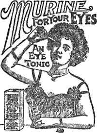 Murine is compounded in the Laboratory of the Murine Eye Remedy Co., Chicago, by Oculists, as used for years in Private Practice, and is Safe and Pleasant in its Application to the most Sensitive Eye, or to the Eyes of a nursing Infant. Doesn’t Smart.
