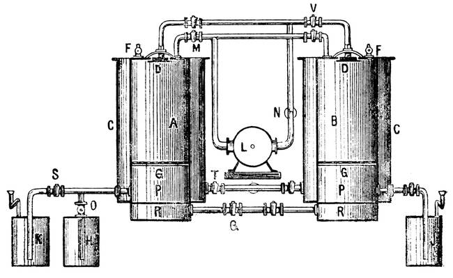 | Washing drums; Pits or vats with proper arrangements for stirring, draining and inspection; Glue stock washer invented by W. A. Hoeveller, described and illustrated | 22 |