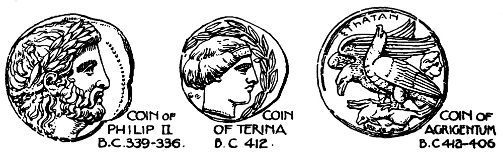 Greece, or Hellas, consisted of a number of small states, speaking the same language, and worshipping the same gods. Almost the whole of the Ægean coast of Asia Minor was occupied in early times by Greek Colonies, which supplanted those of the Phœnicians of Tyre and Sidon. The southern portion of this seaboard was occupied by the Dorians, and the northern by Ionians. In the course of time other Greek settlements were made on the Black Sea and Mediterranean Coast of Asia Minor; as well as at Syracuse, Gela and Agrigentum, in Sicily, and in Etruria and Magna Grecia in Italy. These colonies appear to have reached a higher state of art at an early period than Greece itself. The ascendency in art in Greece was enjoyed by the Dorians circa, 800 B.C.; after which Sparta took the lead, but was in turn excelled by the Ionians, when Athens became the focus of Greek art, and attained a degree of perfection in that respect that has remained unequalled to this day. Athens was destroyed by the Persians under Xerxes, 480 B.C.; but under Pericles (470-29 B.C.) Greek art reached its culmination.