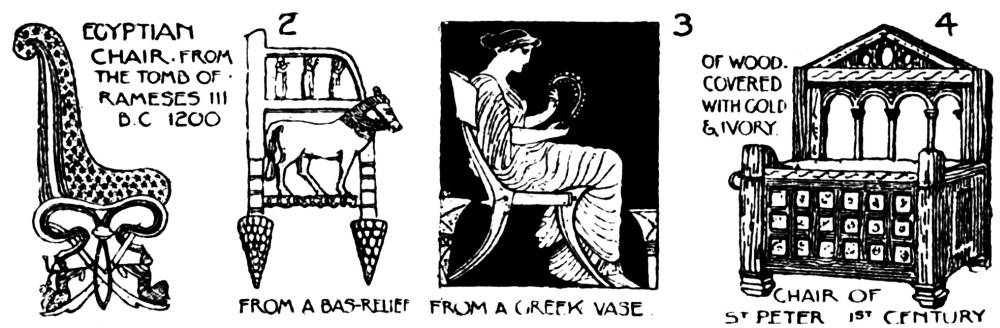 The advantages to be derived by students and craftsmen from such a study are manifold, for, by a careful study of these arts, we may see the capabilities and limitations of material, the appropriateness and application of ornament, the continuity of line and form—yet with a marked diversity of enrichment and treatment—the interest and significance of detail, and the customs, myths and traditions of the past with their continuity of thought and expression.