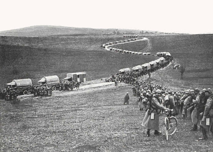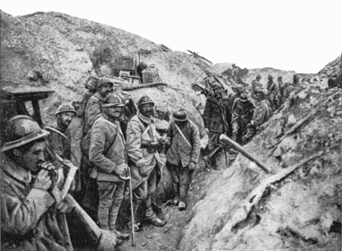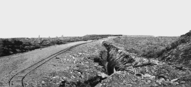 In February, 1916, only one broad-gauge railway connected Verdun, via St. Menehould, with the rest of France. At the outset of the offensive it was cut by enemy gun-fire between Parois and Dombasle. There remained the narrow-gauge Meuse railway and the road. The carrying capacity of the former was increased to 2,000 tons per day, while the motor service along the “Sacred Way” was organised to such a pitch that it was able to ensure the transport of the troops, the evacuation of the wounded and the revictualling of 250,000 combatants.