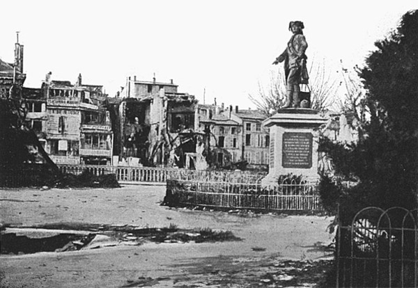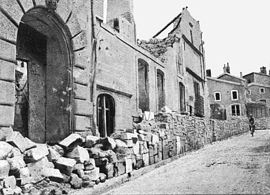 The town had been bombarded three times. On August 24th it received about 2,000 shells; on September 26th the Citadel received 1,000 to 1,200 shells in five hours; on October 13th, 14th and 15th 20,000 to 25,000 shells fell in the town, severely damaging the upper part and the Citadel.