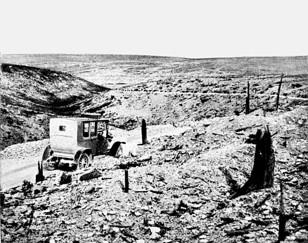 | fig076 | The car coming from Tavannes Fort takes the road on the right to Vaux Fort. That on the left leads to Souville Fort |