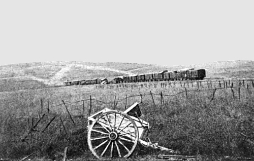 | fig110 | The last train to pass at the foot of Poivre Hill in 1916. It was wrecked by enemy artillery. |