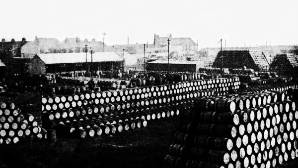In oily fish, such as herrings and sprats, each minute globule of oil is enclosed within a thin skin. It is practically impossible to rupture this skin and liberate the oil simply by the application of pressure. When,125 however, these globules are heated the skin shrivels, the oil globules expand and burst the skin, and the liquid oil is liberated and can then be extracted from the flesh by pressure. To obtain the oil, therefore, the fish are boiled or steam heated in large vats until the oil is set free. The hot mass is then placed in a press and the oil squeezed out. The residue is made into cattle food and fertilizer.