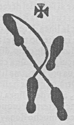 La planta natural, es, la de los dos pies delanteros, que han de estar plantados rectamente, conforme se vèn, estãdo los pechos y rostro de quadrado a el Maestro; que su lugar viene a ser el en q̃ està puesta la Cruz. Los dos pies que estan de tras, son posturas que haze el izquierdo en dos Reuerencias que ay diferentes, que vna es la Cierta, y otra la Galana, como q̃da dicho, y se vè por la estampa. Por manera, que el pie izquierdo lo semejo en tres partes. Vna plantando naturalmẽte al lado del derecho. Otra despues de auer tirado la Reuerencia Galana, que es la de la linea derecha donde viene a parar el pie izquierdo tras el talon de el derecho, medio pie de claro, dõde se quiebra la Reverencia, sacandole a compas al lugar donde estaua por la misma linea derecha q̃ le retirò. Otra, en que se halla el mesmo pie izquierdo, al fin de la linea Curva, que es la Reuerencia cierta: Porque aqueste circulo se haze con mucho donayre, y en quebrando la Reuerencia, que ha de ser en el sitio donde se vè, se ha de boluer a deshazer el mesmo circulo, poniendo el pie en la plãta que primero estaua, para proseguir lo que se ha de obrar. Y en qualquiera de estas dos Reuerencias, se deue poner mucho cuidado,[23] obrandola con todo el ayre possible. Al tiempo de començar esta Reuerencia, al se ha de quitar el sombrero con la mano derecha, lleuandole la copa a fuera, poniendole a la faltiquera derecha, buluiendoselo a poner al acabar la Reuerencia, que ha de ser a vn tiempo con el fin del tañido. Y porque las Reuerencias de la Gallarda, y Folias son algo dilatadas por lo largo de los tañidos, se permite empeçarlas a la mitad de ellos, por su mayor breuedad. En todas las Danças se acostumbra a dançarlas con el sombrero puesto despues de la Reuerencia, excepto en la Gallarda, que es costumbre dançarla con el sombrero en la mano. Y porque se quita con la mano derecha, se ha de passar a la izquierda; porq̃ no es bien lleuar la derecha ocupada. En qualquier Rompido, o fin de Dança, o parte donde el cuerpo paráre, ha de quedar plantado en la conformidad que se planta para la Reuerencia.