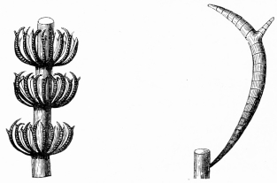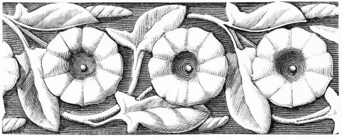 Botany, or the study of plants (Gr. botane, a plant), is capable of many subdivisions: thus we have one department which, from its dealing with the vital functions of the plant, we term physiology (Gr. physis, nature—logos, science); another which, from its more especially dealing with the organization and structure of the plant, is called organography, or structural botany; while a third great division, systematic botany, derives its name from its teaching how the multifarious forms of vegetable life may yet be classified into genera, and these again into orders{5} and species from certain points of resemblance in the plants thus classed together. Botany, in itself a science in the ordinary use of the term, may, however, render valuable service to art; and it is this phase of the subject which we more especially propose to develop, treating only of the more exclusively scientific points so far as we find them necessary for our present purpose; and in this we think we are fully justified, for though numbers of excellent works are accessible to the student who desires to study botany as a science, but few fully recognise its importance in a modified form to the art-student, and more especially to the designer. To the ornamentist a knowledge of the laws of plant growth is of really the same importance as the study of anatomy to the figure-painter or sculptor, and the absence of this knowledge is to the initiated, in either case, as readily detected. Many who are now content to forego this precise knowledge are no doubt partly debarred by the technicalities which meet them at every sentence in ordinary botanical works. Bearing in mind, therefore, the special requirements of our readers, we shall endeavour to avoid as far as possible the use of terms which, though scientifically valuable, and in fact essential to correct and true description, are not such as we may reasonably assume our readers, without special botanical study, to be familiar with. A knowledge of these terms is, however, very desirable, since their conciseness renders them valuable, and more especially, also, because many excellent works, which it will be of advantage to the student to consult, largely employ them. We trust that in the few cases where such terms are in the present work introduced,{6} a clear explanation of their force and utility will be found to accompany them; we shall also, as a further assistance, add the source from whence the term is derived, wherever the introduction will tend to throw additional light on the meaning of the word.