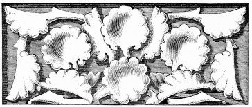 The influence of geometry upon design has in almost all periods of art been very marked—in some styles, as the Early English Gothic, and the Italian of the thirteenth century, much more so than in others; but in no style is it altogether ignored. Whether we study the examples of decorative art produced in our midst, the result of modern skill; or turn to the remains of Egyptian and Assyrian ornament, the brain-work and handiwork of men who toiled thousands of years ago, or whether we contrast{xi} the delicacy of much of our English work with the rude carving or pottery of the South Sea Islander, we still cannot fail to notice that amidst much that is very marked and distinctive in comparing one period with another, or the handiwork of one race or nation with another, this one great principle of the adaptation of geometry to ornament is exhibited more or less prominently in all. Where a sense of flatness is desirable, as in designs for floor-coverings—as mosaic, tile-work, carpeting, &c.—the use of geometrical forms appears especially appropriate, since the feeling of flatness is easily obtainable, and yet, accompanying this essential feature, almost any degree of complexity and richness of effect. These remarks upon the use of geometry must, however, be considered to apply more especially to the simpler kinds of design, to those intended to fill but a subordinate place. As we rise higher, geometry, though still valuable in the setting out and defining of leading lines and masses, gives place to higher forms, those based on animal or vegetable life. In a fourteenth-century diaper the part we admire is not the geometric basis of the design, but the delicate filling in of oak or maple, buttercup or ivy, though we unconsciously admire this the more on account of the enclosing straight lines—lines that we should at once miss if they were removed as superfluous.