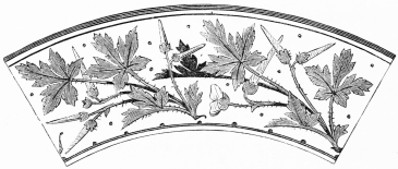 The lichen on the rock, the wayside grass, the many-coloured fungi, are no less full of beauty than the forms that more ordinarily attract attention, and are no less worthy of study. “The works of the Lord are great, sought out of all them that have pleasure therein;” and Nature has ever to the devout mind, from its own inherent beauty and its testimony to Him its creator and sustainer, been a study of the deepest interest. Some who glance over these opening remarks before entering upon the search for such material in the body of the book as may seem available for their immediate purpose, may consider that this view of the subject is unpractical; but we would remind such that all art, pictorial, sculptural, decorative, or what not, is only noble and worthy of the name so far as it affords food for thought in the spectator, and testifies to thought in the artist, and that the nobility of the work is in direct proportion to such evidence of inner life. Art that is æsthetic and sensuous, though pleasing to the eye, must ever in the nature of things hold a subordinate place to that art which is symbolic, to those forms in which an inner meaning may be traced; and though one work of art may perhaps necessarily contain less of this reflected thought than another, yet this proposition we think will hold good, that no work of art that does not in some way testify to this can be altogether satisfactory, for while pleasing for a time to the eye, it yet leaves the mind unsatisfied: the reverse will equally hold good, and we may safely repeat that in proportion to the thought bestowed and expressed by the artist will be the enjoyment and profit to be derived by others from it. The true artist will not consider with how small expenditure of trouble he{vii} may attain his end; he will, on the contrary, have a heart full of sympathy with all that is beautiful. This will become a wealth of knowledge, will prove a precious possession to himself, and the result must be visible in his work, and stamp it with Promethean fire. To the artist then who is worthy of the name, nothing can be too petty for regard, nothing that the Creator has pronounced “very good” too insignificant for notice; for in Nature beauty is scattered with a lavish hand, and the fungus that passes through all the stages of its existence during a summer’s night, and the snow-flake still more transient in its duration—
