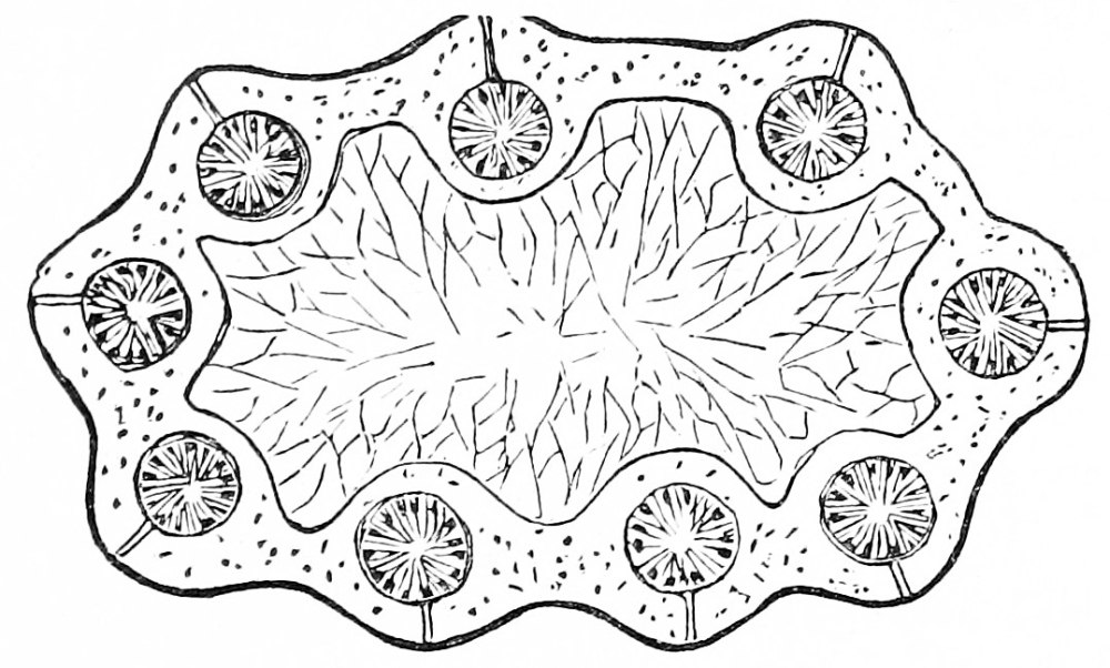 have a charm of their own no less than the higher forms, while to give but one other example from the many that present themselves, the Foraminifera—animal remains met with in chalk cliffs—though only visible with high microscopic power, have the curves of their shells as graceful, designs as varied, markings as intricate, as perhaps any other natural objects whatsoever. We therefore appreciate the quaint fancy, the studied thought of the designer who in some old glass that we have noticed at Ockham Church, in Surrey, while making some of his quarry designs of columbine, rose, and other lovely forms, chose for one of them a little fungus surrounded by cup moss, and springing from the turf; frail creatures of a day, meet emblems—like the withering grass, the{viii} fading flower—of the short estate of man, the transience of all his glory.