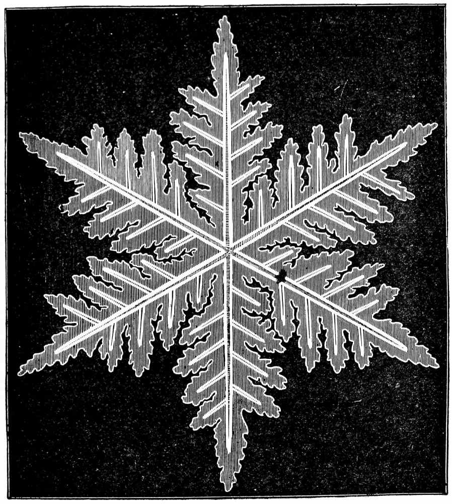 and the more familiar forms of earth, deals with those delicate forms of the air, the flakes of falling snow, and points out the immense variety of graceful forms afforded by their crystals.