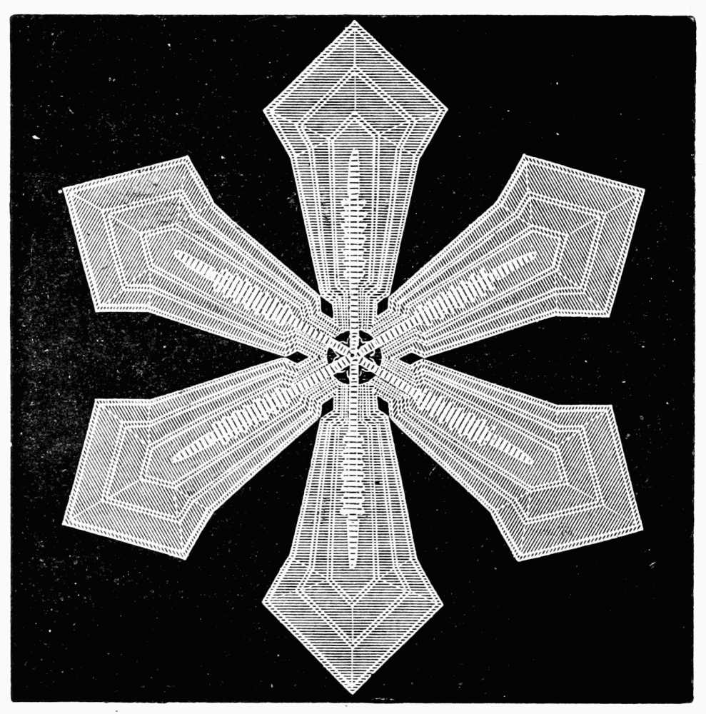 Symmetry and geometry are both so commonly met with in ornamental art, and are also so conspicuously present in the forms of snow crystals, that the application of those forms to design cannot fail to follow when once their beauties are brought under the notice of the designer and manufacturer.