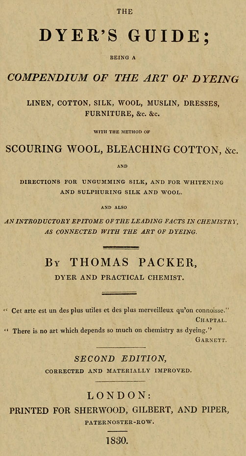 Concerning all these different branches, one general observation will suffice; namely, that those who are concerned in them have, for the most part, obtained, their knowledge of the art of dyeing, not from theories adapted to explain the different processes, but from practice in that branch in which they are occupied. They usually, therefore, perform those processes which {4} they have been shewn and told, without any inquiry into the causes which produce the results. There are, it is admitted, exceptions to this, men of general information and knowledge being occasionally found in the various branches of dyeing, but they are so few, that it may be questioned, when compared with the great body employed in the art, whether they amount to one in a thousand. This is not, however, to be attributed to any indifference in such persons to acquire a correct knowledge of the art, but is chiefly owing to a deficiency of the ready means of acquiring such information; which information it is the design of the present Treatise to supply; there not being, as far as the present writer knows, any such work, at a moderate price, to be obtained in the English language.