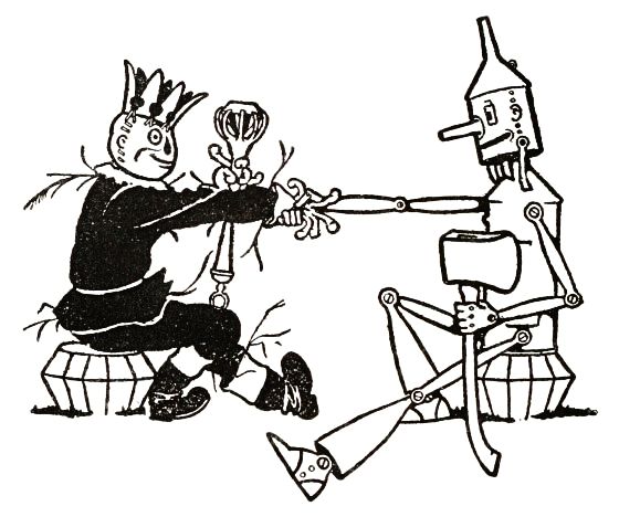 "And I have made the Scarecrow my Royal Treasurer," explained the Tin Woodman. "For it has occurred to me that it is a good thing to have a Royal Treasurer who is made of money. What do you think?"