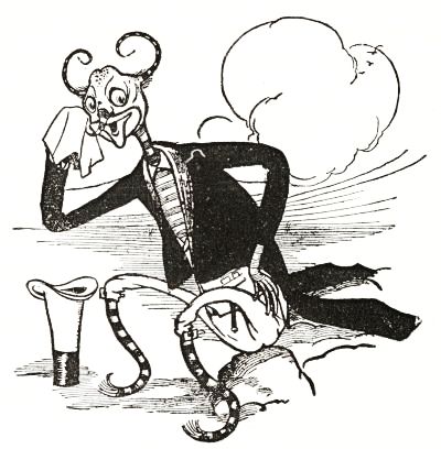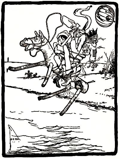 "Then," replied the Gump, "please take me to pieces. I did not wish to be brought to life, and I am greatly ashamed of my conglomerate personality. Once I was a monarch of the forest, as my antlers fully prove; but now, in my present upholstered condition of servitude, I am compelled to fly through the air—my legs being of no use to me whatever. Therefore I beg to be dispersed."