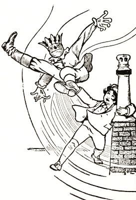 At first he was so frightened and horrified that he wanted to run away, but his legs trembled and shook so badly that he couldn't. Then it struck him as a very funny thing for Jack to come to life, especially as the expression on his pumpkin face was so droll and comical it excited laughter on the instant. So, recovering from his first fear, Tip began to laugh; and the merry peals reached old Mombi's ears and made her hobble quickly to the hedge, where she seized Tip's collar and dragged him back to where she had left her basket and the pumpkin-headed man.