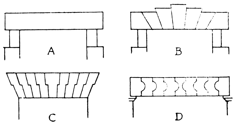 | Purpose—The Fillet—Sheltering Mouldings—The Cavetto, p. 139—Cyma Recta—Bracketing Mouldings—The Ovolo, p. 140—Cyma Reversa—Binding Mouldings, p. 141—The Torus—The Scotia—The Facia, p. 142—Decoration of Mouldings, p. 143—Orthodox Details—Angle Leaf, p. 145—Dentils, p. 146—Employment of Mouldings, p. 147—Attitude, p. 148—Panel Mouldings—Woodwork, p. 149—Applied Mouldings, p. 151—Bolection Moulding, p. 152—Mouldings in Plaster Work—Wood Turning, p. 153—Metal Turning—Pottery, p. 154—Mechanically produced Metal Mouldings—Wrought Iron, p. 155—Silver Work, p. 156—Sheet Metal, Spinning, and Repoussé, p. 157. | ||