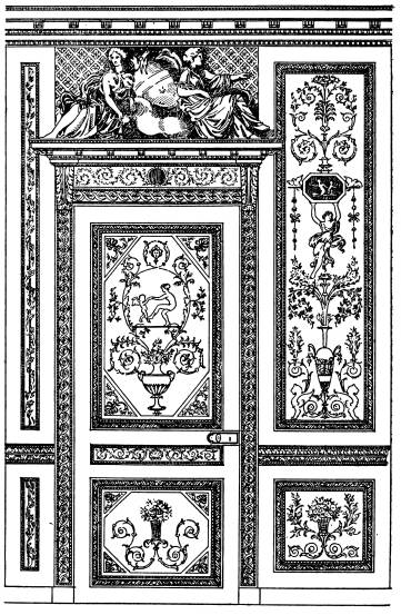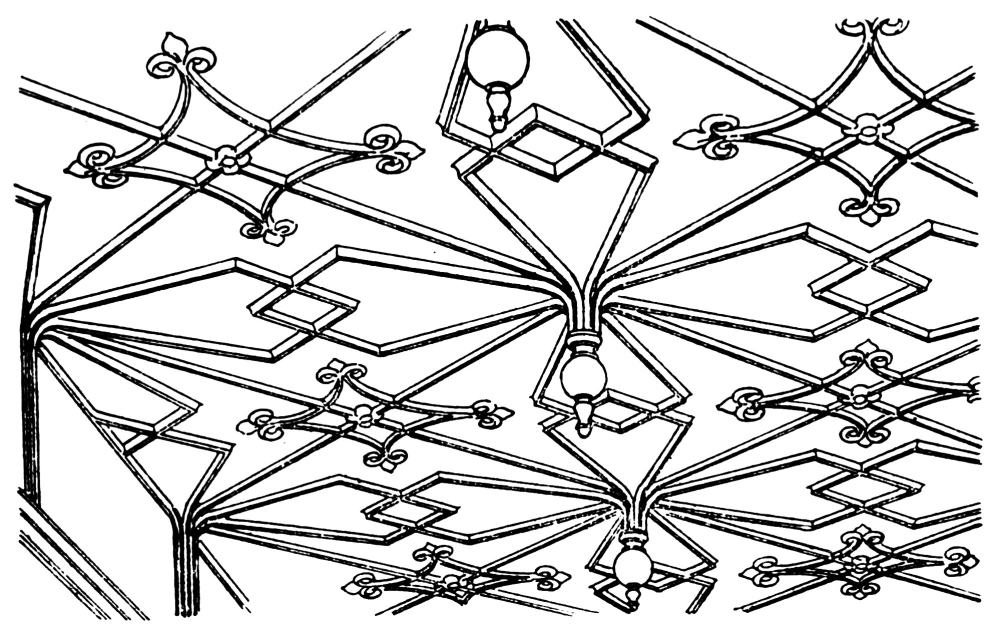 | Wall Treatment, p. 216—Ceilings, p. 218—Jacobean—Carolean and Georgian, p. 221—Adam Ceilings, p. 222—Vaults and Domes, p. 224—The Cove, p. 225—The Frieze, p. 226—Borders, p. 227—Geometric Elements—The Undulate Line, p. 230—Repetition and Alternation, p. 233—Treatment of Angles, p. 234—Pilaster Treatment—Panelled Pilasters, p. 235—Capitals and Bases—Treatment of Panels, p. 236—Juxtaposition, p. 238—The Growth Line in Composition, p. 241—Grouping and Massing of Detail—Division of Area, p. 242—Human and Animal Life in Composition, p. 244—Forms in the Round, p. 245 Supports and Balusters—Standards, p. 246—Proportion, p. 247—Vase Forms and Treatment, p. 248—Working Drawings, p. 249—The Segment or Stretch out, p. 250. | ||