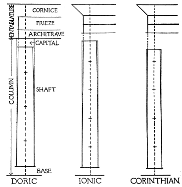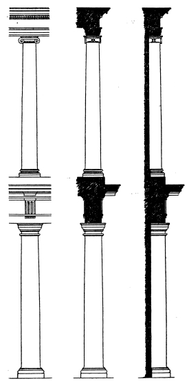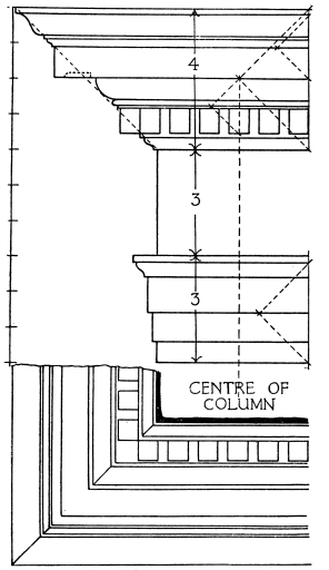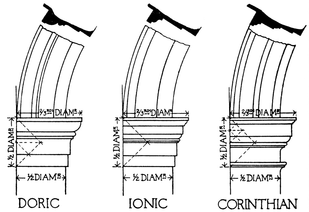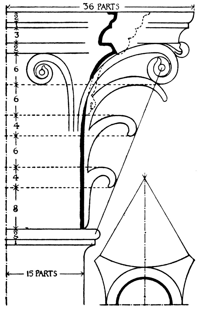 | Introduction, p. 158—System of Proportion, p. 159—The Order, p. 160—Doric Order, p. 161—Ionic Order—Corinthian Order, p. 163—Doric Entablatures—Mutules, p. 164—Ionic Entablature, p. 169—Corinthian Entablature, p. 171—The Column, p. 172—The Capital—Doric Capital, p. 173—Ionic Capital—Ionic Volute, p. 175—Corinthian Capital, p. 178—The Base, p. 180—Doric Base, p. 181—Ionic Base, p. 182—Corinthian Base—The Arch, p. 184—Doric Impost, p. 185—Doric Archivolt—Ionic Impost, p. 186—Ionic Archivolt—Corinthian Impost—Corinthian Archivolt—The Keystone, p. 187—The Pedestal, p. 188—Doric Pedestal, p. 189—Ionic Pedestal—Corinthian Pedestal, p. 190—The Baluster, p. 191—Spacing of Balusters—Balustrading, p. 193—Use of Columns, p. 194—Disposition and Spacing in Colonnades, p. 195—Orders above Orders, p. 197—The Pilaster, p. 199—Arcades, p. 200—The Subsidiary Order, p. 202—Treatment of Superimposed Orders, p. 204—Rustication, p. 205—The Basement, p. 207—The Attic, p. 208—The Pediment, p. 209—Doors, p. 211—Windows, p. 213. | ||