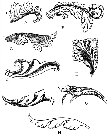 | Outline Drawing, p. 254—Undesirable Realism, p. 255—Craft Restrictions, p. 256—Materialistic Influence, p. 258—Early Renderings, p. 261—The Anthemion, p. 262—Greek Sculptured Ornament, p. 263—The Acanthus Leaf, p. 264—Roman Development—The Scroll, p. 266—Græco-Roman—Byzantine, p. 267—Romanesque—Gothic—Italian Renaissance, p. 268—The Husk Leaf, p. 269—The Rosette, p. 270—Tendrils, p. 271—Nature Influence—Inconsistent employment of Symbolic Elements, p. 272—Consistency in Growth—Branching, p. 273—Treatment and Employment of Leaves, p. 275—The start in Ornament, p. 276—Italian Renaissance Influence—Jacobean, p. 280—French Renaissance—Henry II, p. 281—Louis XIII, Louis XIV, Régence—Louis XV, p. 283—Rococo—Louis XVI, p. 284—Grinling Gibbons School of Carving—Adam Style, p. 285—Empire—System of the Acanthus Leaf, p. 286. | ||