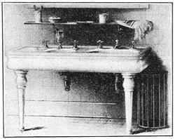 [2] The cleaning out of these cemented vaults is an exceedingly unpleasant task. Some prefer to have a strong, water-tight box placed under the closet seats. When this box is nearly full, it can be removed to some place where fertilizer is needed, and there emptied, the contents being plowed into the ground. In order to make this task as simple as possible, it is a good plan to put the box on skids, and have a heavy strip in one end with a bolt and ring through it, so that a horse can be hitched to the box to draw it away. If a little dry earth or lime is put into the box each day, there will be no unpleasant odor.