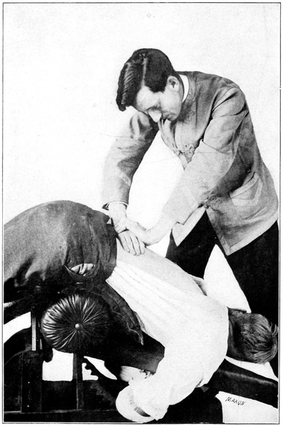 Potts’ Disease.—Tubercular caries of the bodies of the vertebrae is curable, within limits. Occasional cases are seen in which Nature has stopped the spread of the disease by walling off the morbid area with exostosis. Such cases should not be adjusted, and the disease may remain latent through a long life. When active the disease proves fatal unless checked, which is possible in the earlier stages, and becomes impossible when the vertebral bodies are too fragile to stand strong adjustments. Discernment in case-taking will avoid any fatalities under adjustment, but by no means all cases of Potts’ Disease are curable.