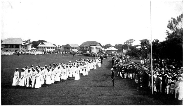 In 1891 the report from the Mende country that a number of cannibals had been burnt to death came as a shock to the Executive. The existence of the practice of cannibalism was known, but there was no idea that there was cannibalism on such a large scale. It seems that the inhabitants of the Imperri chiefdom had suffered so heavily at the hands of the cannibals that they complained to their chief. The complaints becoming too numerous and too insistent to be disregarded, the chief called a meeting, and the big men of Gangama, Gbangbama, Yandehun, and other towns and villages met at Bogo. Here the question of cannibalism was discussed, and those present were informed that a number of Tongo players[6] had been summoned for the purpose of discovering the cannibals, the guilty parties no doubt depending upon their Borfima[7] and bribes to escape detection. On the appointed day the Tongo players arrived. A 5huge fire was lighted, and the Tongo players were directed to throw into the fire all persons whom they found to be cannibals. One of the first to be cast into the flames was the principal chief who had been instrumental in calling in the Tongo players, and it is asserted that as many as eighty persons were burnt to death, a number of them anticipating their fate and of their own accord throwing themselves into the flames. A mercantile agent who visited Bogo shortly after this terrible retribution reported that the spot where the burning took place was a sickening sight, with its heaps of white ashes and remains of human bodies, whilst Mr. Alldridge, who held an inquiry into the matter, says that the pyramid of calcined bones which he saw at the junction of two roads just outside Bogo was about four feet high.