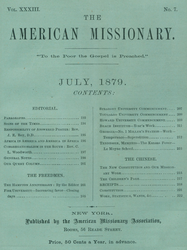 Title: The American Missionary — Volume 33, No. 07, July, 1879