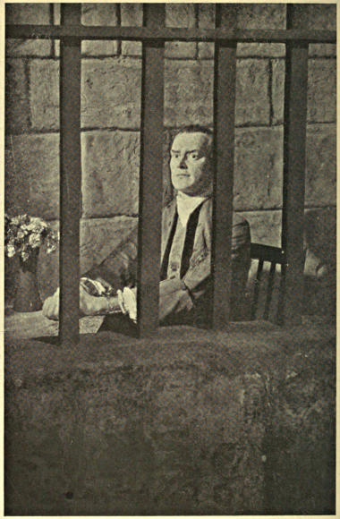 This model is posed in the actual cell from the Newgate prison, from which he made his sensational escape.