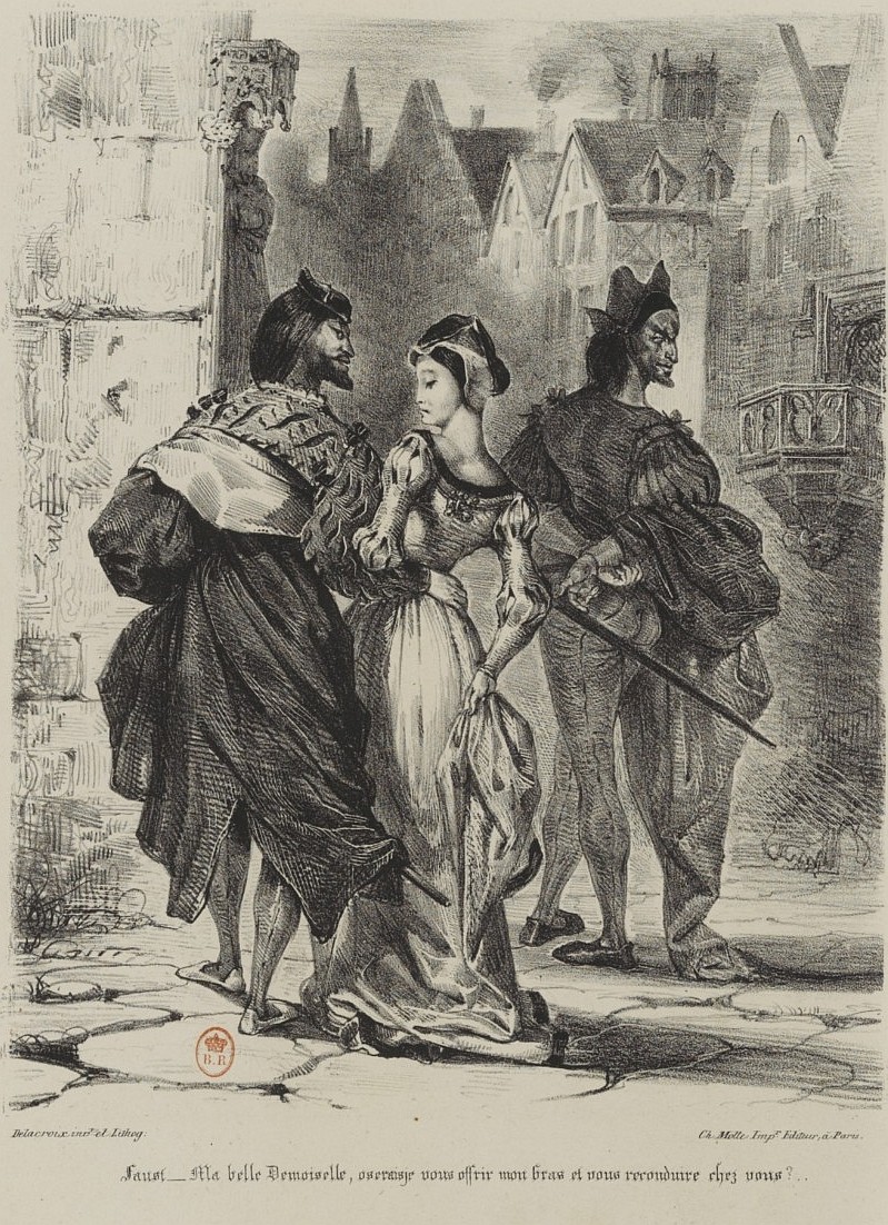 [11] Delacroix écrit à Soulier: «Mes mauvais moments ont été dans les promenades à l'usage des promeneurs, parce que j'y rencontrais des faces fardées, habillées, bourgeoises ou aristocratiques, tous mannequins.» (Correspondance, t. II, p. 52.)
