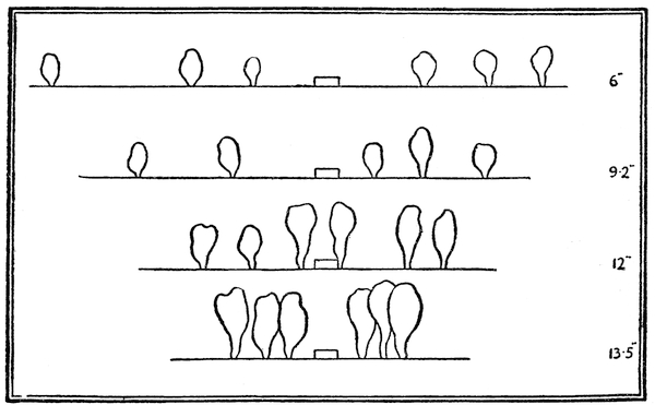 | In this sketch the black silhouette shows the position at the moment the torpedo is fired; the white silhouette the position the ship has reached when the torpedo meets it | 107 | |
