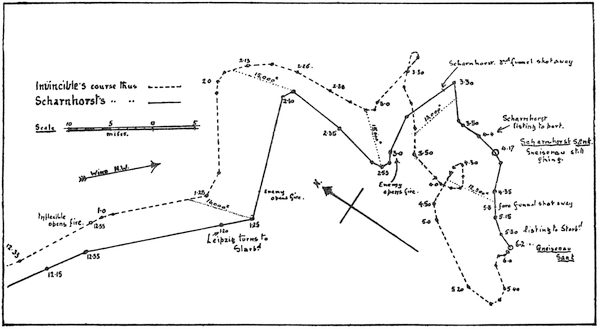 | Plan of the action between the British battle-cruisers and the German armoured cruisers | 199 | |