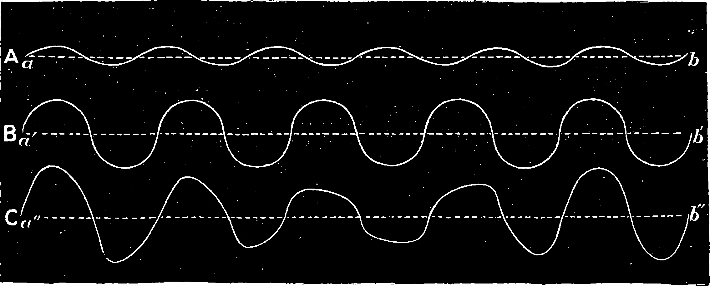 Perhaps the first step should be to point out the fact of the various forces of nature—mechanical action, heat, light, electricity, magnetism, chemical action—being so related that any one can be made to produce all the rest directly or indirectly. Some examples of the conversion of one form of force into another occur in the foregoing pages. Thus, on page 485 an experiment is described in which electricity produces a mechanical action; electricity is also shown, on page 496, to produce heat; on page 491 chemical action; on page 501 magnetism. Then, as instances of the inverse actions, there is on page 488, in the first paragraph on “Electric Induction,” an account of the mode in which mechanical movements may give rise to electricity; and in the experiments in pages 508, 509, and particularly in the account of the Gramme machine, page 511, it is shown how mechanical movements can, through magnetism, produce electricity. The voltaic element, page 491, and the galvanic batteries, are instances of chemical action supplying electricity. On page 518 a striking instance is mentioned of changes in the forms of force. Every lighted candle is a case of chemical action giving rise to light; and interesting examples of the inverse relation are referred to on page 608. On page 168 is represented the conversion of arrested motion into heat and light. We have, indeed, sufficient examples to arrange a series of these conversions of forces in a circle. Thus, chemical action (oxidation in the animal system) supplies muscular power, this sets in motion a Gramme machine, the motion is converted into electricity, the electricity produces the electric light, and light causes chemical action, and with this the cycle is complete. In the steam engine heat is converted into mechanical force, and many cases will present 804themselves to the reader’s mind in which mechanical actions give rise to heat. The doctrine of a mutual dependence and convertibility among all the forms of force was first definitively taught in England by Mr. (now Justice) Grove, in 1842; and almost simultaneously Dr. Meyer promulgated similar views in Germany. Mr. Grove subsequently embodied his doctrine in a treatise, called “The Correlation of the Physical Forces,” which has seen several editions.