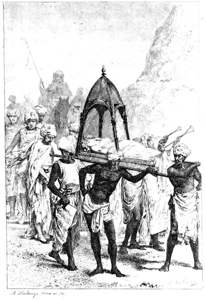 She said, It hath reached me, O auspicious King, that Sindbad the Seaman continued in these words:—Now after the King my master had married me to this choice wife, he also gave me a great and goodly house standing alone, together with slaves and officers, and assigned me pay and allowances. So I became in all ease and contentment and delight and forgot everything which had befallen me of weariness and trouble and hardship; for I loved my wife with fondest love and she loved me no less, and we were as one and abode in the utmost comfort of life and in its happiness. And I said in myself, “When I return to my native land, I will carry her with me.” But whatso is predestined to a man, that needs must be, and none knoweth what shall befal him. We lived thus a 41great while, till Almighty Allah bereft one of my neighbours of his wife. Now he was a gossip of mine; so hearing the cry of the keeners I went in to condole with him on his loss and found him in very ill plight, full of trouble and weary of soul and mind. I condoled with him and comforted him, saying, “Mourn not for thy wife who hath now found the mercy of Allah; the Lord will surely give thee a better in her stead and thy name shall be great and thy life shall be long in the land, Inshallah!”[47] But he wept bitter tears and replied, “O my friend, how can I marry another wife and how shall Allah replace her to me with a better than she, whenas I have but one day left to live?” “O my brother,” said I, “return to thy senses and announce not the glad tidings of thine own death, for thou art well, sound and in good case.” “By thy life, O my friend,” rejoined he, “to-morrow thou wilt lose me and wilt never see me again till the Day of Resurrection.” I asked, “How so?” and he answered, “This very day they bury my wife, and they bury me with her in one tomb; for it is the custom with us, if the wife die first, to bury the husband alive with her and in like manner the wife, if the husband die first; so that neither may enjoy life after losing his or her mate.” “By Allah,” cried I, “this is a most vile, lewd custom and not to be endured of any!” Meanwhile, behold, the most part of the townsfolk came in and fell to condoling with my gossip for his wife and for himself. Presently they laid the dead woman out, as was their wont; and, setting her on a bier, carried her and her husband without the city, till they came to a place in the side of a mountain at the end of the island by the sea; and here they raised a great rock and discovered the mouth of a stone-rivetted pit or well,[48] leading down into a vast underground cavern that ran beneath the mountain. Into this pit they threw the corpse, then tying a rope of palm-fibres under the husband’s armpits, they let him down into the cavern, and with him a great pitcher of fresh water and seven scones by way of viaticum.[49] When he came to the bottom, he loosed himself from the rope and they drew it up; and, stopping the mouth of the pit with the great stone, they returned to the 42city, leaving my friend in the cavern with his dead wife. When I saw this, I said to myself, “By Allah, this fashion of death is more grievous than the first!” And I went in to the King and said to him, “O my lord, why do ye bury the quick with the dead?” Quoth he, “It hath been the custom, thou must know, of our forbears and our olden Kings from time immemorial, if the husband die first, to bury his wife with him, and the like with the wife, so we may not sever them, alive or dead.” I asked, “O King of the age, if the wife of a foreigner like myself die among you, deal ye with him as with yonder man?”; and he answered, “Assuredly, we do with him even as thou hast seen.” When I heard this, my gall-bladder was like to burst, for the violence of my dismay and concern for myself: my wit became dazed; I felt as if in a vile dungeon; and hated their society; for I went about in fear lest my wife should die before me and they bury me alive with her. However, after a while, I comforted myself, saying, “Haply I shall predecease her, or shall have returned to my own land before she die, for none knoweth which shall go first and which shall go last.” Then I applied myself to diverting my mind from this thought with various occupations; but it was not long before my wife sickened and complained and took to her pillow and fared after a few days to the mercy of Allah; and the King and the rest of the folk came, as was their wont, to condole with me and her family and to console us for her loss and not less to condole with me for myself. Then the women washed her and arraying her in her richest raiment and golden ornaments, necklaces and jewellery, laid her on the bier and bore her to the mountain aforesaid, where they lifted the cover of the pit and cast her in; after which all my intimates and acquaintances and my wife’s kith and kin came round me, to farewell me in my lifetime and console me for my own death, whilst I cried out among them, saying, “Almighty Allah never made it lawful to bury the quick with the dead! I am a stranger, not one of your kind; and I cannot abear your custom, and had I known it I never would have wedded among you!” They heard me not and paid no heed to my words, but laying hold of me, bound me by force and let me down into the cavern, with a large gugglet of sweet water and seven cakes of bread, according to their custom. When I came to the bottom, they called out to me to cast myself loose from the cords, but I refused to do so; so they threw them down on me and, closing the mouth of the pit with the stones 43aforesaid, went their ways,——And Shahrazad perceived the dawn of day and ceased to say her permitted say.