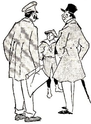 After the trunks were all passed Pop asked a man where the baggage car was and that man couldn't speak English either. He asked Pop what, and Pop says again where's the baggage car, and just then an American that had been over before says to the man he means the luggage van, and the man said oh wy didn't ee si so. Pop says he thinks that's Welsh, which is a language he never liked anyhow. The only welsh thing he ever liked was a rabbit, he said. Wots your name asked the Baggage man. Drake, says Pop. Well your van is the seventh car up. It's marked with a D. Do you know a D when you see it? Pop said he guessed so. He'd seen one once and he had an idea that it looked like a P without a pedestal or a B cut in two. That's it, said the man. Well you put your luggage in the van marked with a P without a pedestal and when you get to London you can go and claim it. But suppose somebody else claims it said Pop. That's his affair and yours not mine says the man and he walked off. Then Pop found out that they don't give checks over here, and he said he guessed the reason was that they preferred cash.