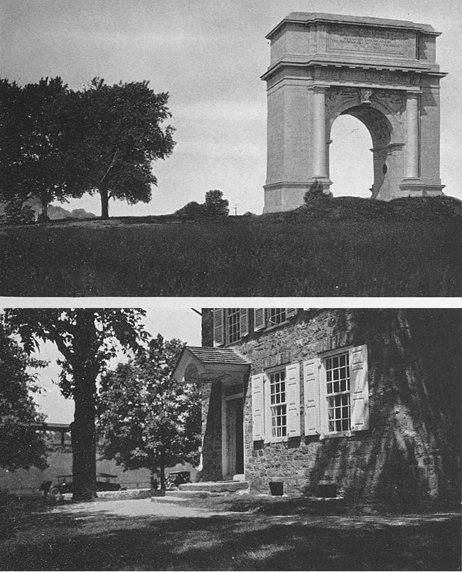 Who has not heard of Valley Forge and the heroic winter of 1777–1778 which Washington spent there with his meagerly clad men? Valley Forge is now a public reservation about twelve miles north of Philadelphia, on the Schuylkill River. Excursion trains run out from that city to the park, so it is easy of access. The grounds cover hundreds of acres, but the principal points are plainly marked and may be quickly reached.
