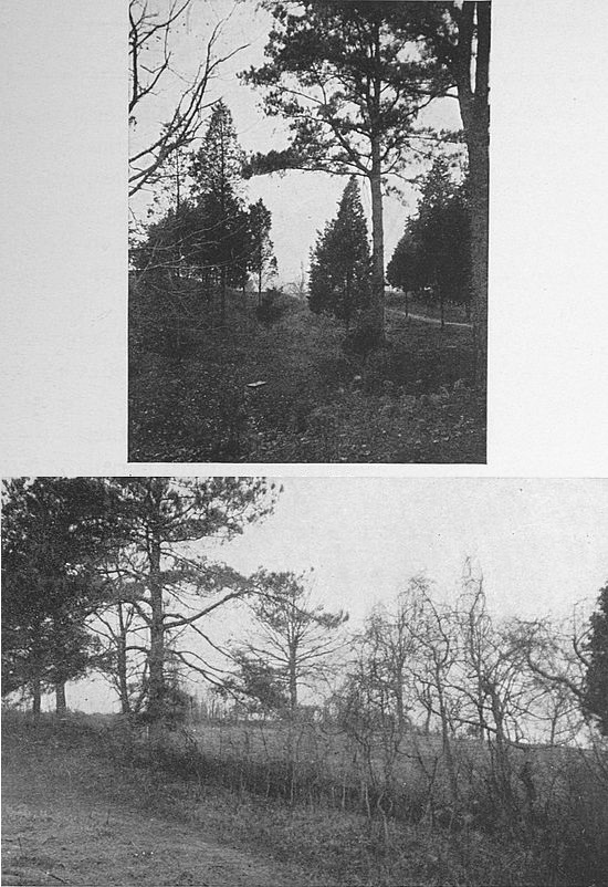 On the outskirts of Petersburg, Virginia, the remains of Forts Haskell and Steadman, the scene of the “Crater” episode, and part of the defences of the capital of the Confederacy which fell before Grant in 1865, have been preserved as a private enterprise. For a small consideration the “Crater” and the earthworks will be shown to the visitor. The Federal forces opposed to Fort Steadman—at the suggestion of a miner from Chambersburg, Pa., it is said—constructed a long tunnel from their lines to beneath the Confederate stronghold. An enormous quantity of powder was here, and when it was set off a body of soldiers was to charge through the breach and take the Confederate positions.