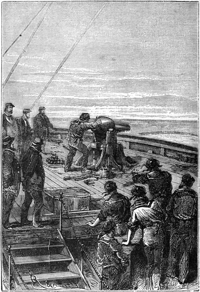 Mais si les uns ne virent là qu'un problème purement scientifique à résoudre, les autres, plus positifs, surtout en Amérique et en Angleterre, furent d'avis de purger l'Océan de ce redoutable monstre, afin de rassurer les communications transocéaniennes. Les journaux industriels et commerciaux traitèrent la question principalement à ce point de vue. La Shipping and Mercantile Gazette, le Lloyd, le Paquebot, la Revue maritime et coloniale, toutes les feuilles dévouées aux Compagnies d'assurances qui menaçaient d'élever le taux de leurs primes, furent unanimes sur ce point.