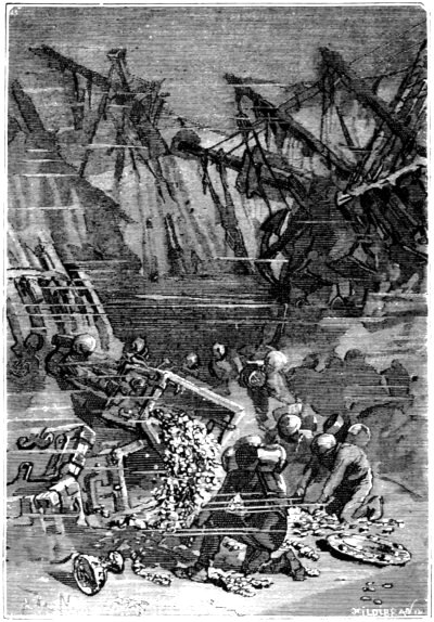 Le capitaine Anderson se rendit immédiatement dans la cale. Il reconnut que le cinquième compartiment avait été envahi par la mer, et la rapidité de l'envahissement prouvait que la voie d'eau était considérable. Fort heureusement, ce compartiment ne renfermait pas les chaudières, car les feux se fussent subitement éteints.
