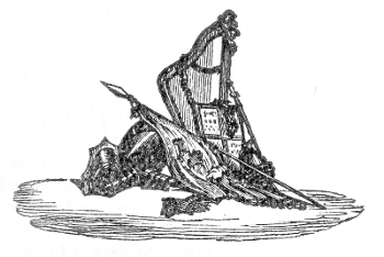 “Their knowledge of wood seemed to be limited to some heath of a dwarfish growth, with stems no thicker than the finger; and, accordingly, they knew not what to think of the timber they saw on board. Not being aware of its weight, two or three of them, successively, seized on the spare topmast, evidently with the view of carrying it off; and, as soon as they became familiar with the people around them, they showed that desire of possessing what they admired, which is so universal among savages. The only thing they looked upon with contempt, was a little terrier dog;—judging, no doubt, that it was too small for drawing a sledge. But they shrunk back, as if in terror, from a pig, whose pricked ears and ferocious aspect (being of the Shetland breed) presented a somewhat formidable appearance. This animal happening to grunt, 31one of them was so terrified, that he became, from that moment, uneasy, and appeared impatient to get out of the ship. In carrying his purpose into effect, however, he did not lose his propensity to thieving, as he seized and endeavoured to carry off the smith’s anvil: finding that he could not remove it, he laid hold of the large hammer, threw it on the ice, and following it himself, deliberately set it on his sledge, and made off.”