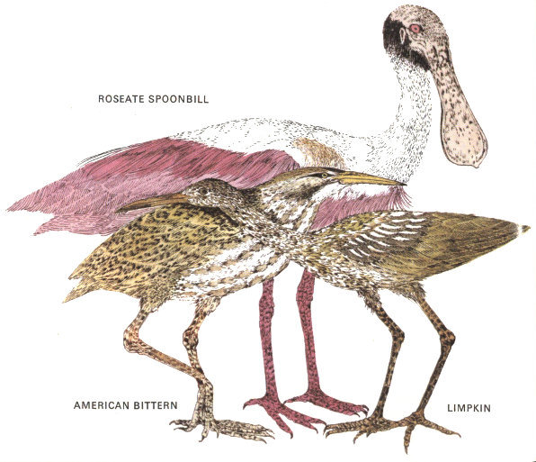 Beyond the pinelands the road, having descended some 2 feet from the park entrance, brings you into the true everglades—the river of grass, or, as the Seminoles call it, Pa-Hay-Okee (grassy waters). To the eye, the glades look like a very flat, grassy prairie broken by scattered clumps of trees. During the dry season (winter) it is in fact a prairie—and sometimes burns fiercely. The dominant everglades plant is sawgrass (actually not a grass but a sedge). The tree islands develop in both high and low spots of the glades terrain. In this unbelievably flat country, small differences in elevation—measured in inches rather than feet—cause major differences in the plantlife: tropical hardwoods on the “mesas,” and swamp trees in the potholes.