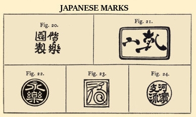 The small collection of marks at the end of the book has no claim to originality. The examples have been selected from the catalogues of the Schreiber collection at South Kensington, and from those of the Franks collections of Oriental and Continental china. For permission to use the blocks my thanks are due, as far as the first two books are concerned, to H. M.’s Stationery Office and to the Education Department; in the case of the last work, to Mr. C. H. Read, who, I understand, himself drew the original marks for Sir A. W. Franks’s catalogue.