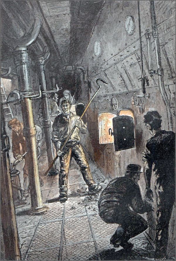 Et, alors, à l'admiration muette succéda l'admiration démonstrative et criarde. Les mains se mirent à battre, les pieds à trépigner, les bouches à s'emplir, puis à se vider de aohs! qui devaient s'entendre du port.